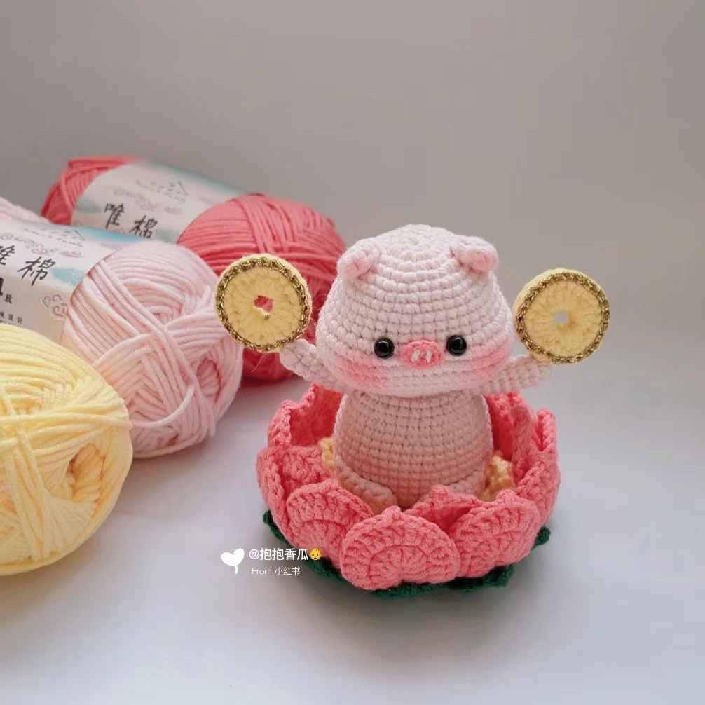 Chart móc heo ngồi trên hoa sen, chart móc heo thần tài