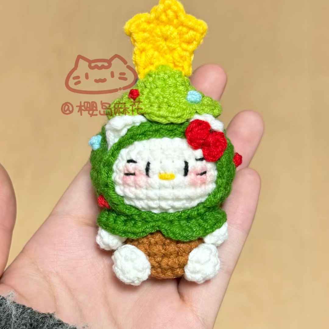 Chart móc cây thông noel mèo, chart móc mèo noel giáng sinh
