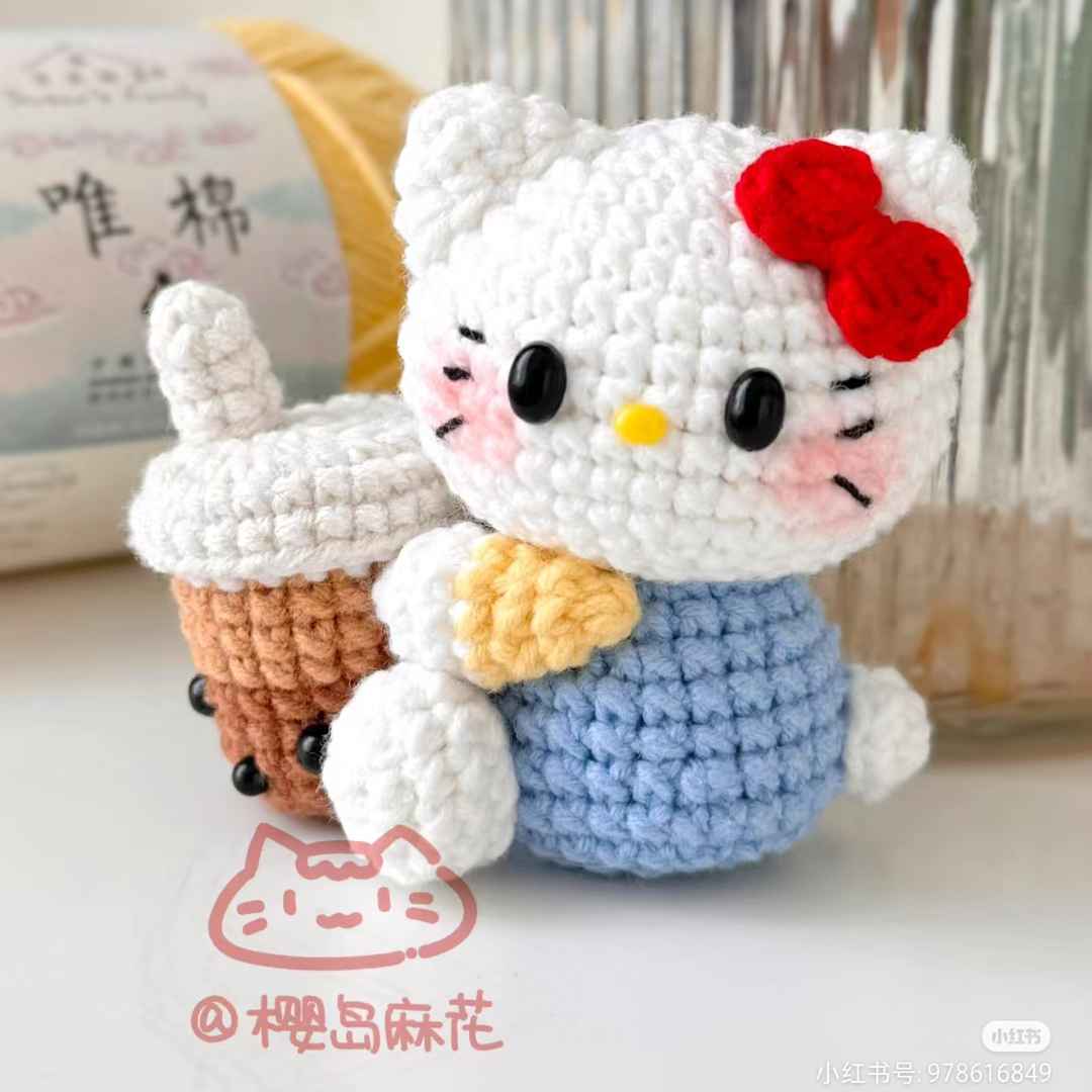 Chart móc bé mèo Kitty uống trà sữa - Chart crochet Kitty drinking milk tea